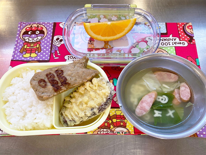 ハンバーガー、ミルミル、レタスサラダ、メロン、にぼし